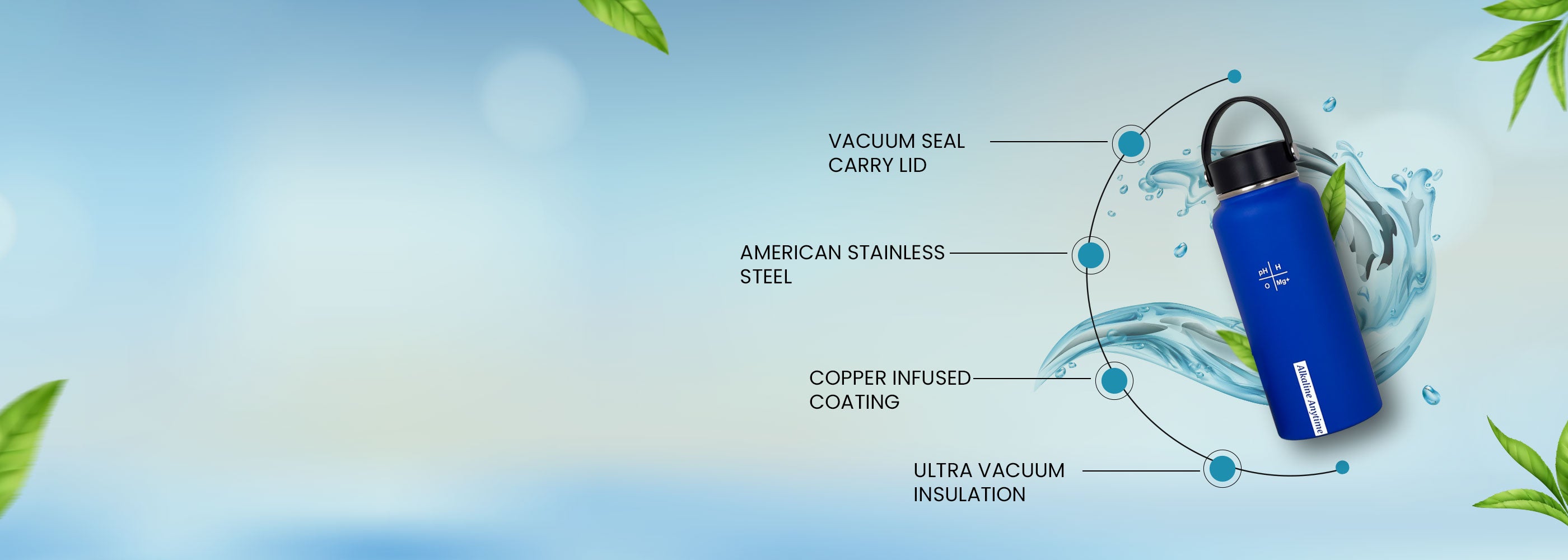 Alkaline Anytime-Sports Alkaline Water Bottle-1 (9.5pH) Alkaline Filter & Stainless Steel Infuser